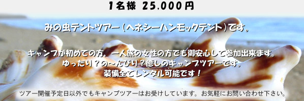●みの虫テント・キャンプ道具一式 / 1名様 2,000円